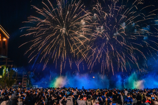 漁田七里海的煙花在夜空繪制出一幅幅璀璨畫卷。(圖片由漁田七里海度假區(qū)提供)