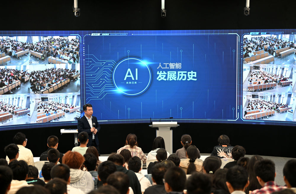 2024年9月20日,天津大學人工智能學院胡清華教授在授課。天津大學在2024年秋季學期推出《人工智能導論》課程,由8位人工智能及交叉學科領域的教授共同打造,同時配備30名來自智算學部、精儀學院、自動化學院、理學院等13個學院的專業(yè)教師,面向全體本科生進行授課。