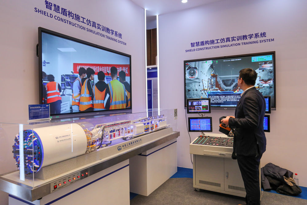 2024年1月30日,工作人員在上海舉辦的“數(shù)智未來”教育展上演示智慧盾構施工仿真實訓教學系統(tǒng)。2024世界數(shù)字教育大會以“數(shù)字教育:應用、共享、創(chuàng)新”為主題,圍繞教師數(shù)字素養(yǎng)與勝任力提升、數(shù)字化與學習型社會建設、數(shù)字教育評價、人工智能與數(shù)字倫理、數(shù)字變革對基礎教育的挑戰(zhàn)與機遇、教育治理數(shù)字化與數(shù)字教育治理等議題展開討論。