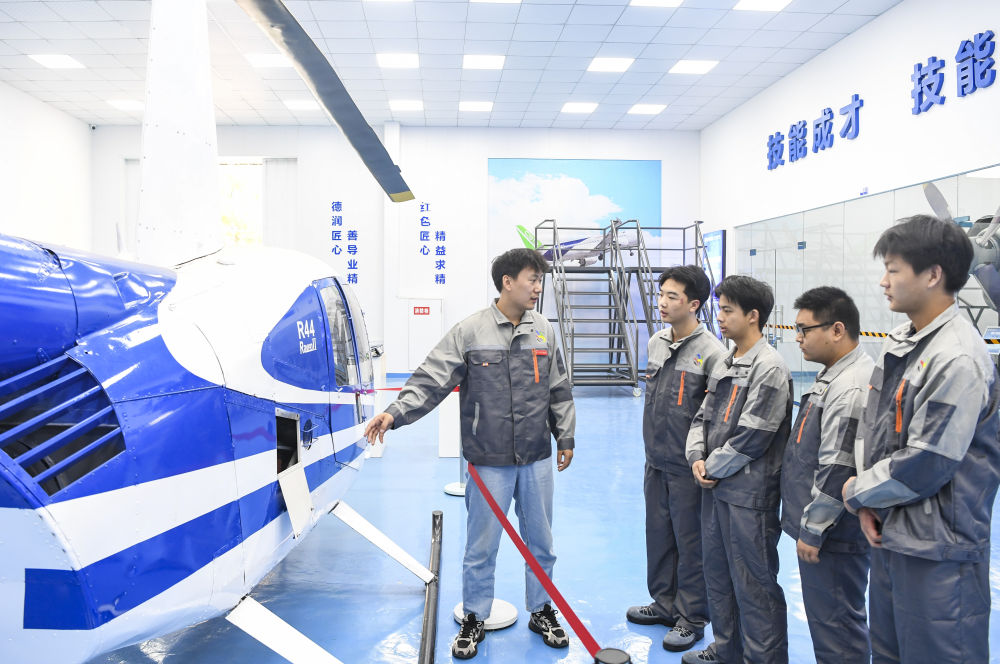 2024年9月25日,重慶城市職業(yè)學院航空學院教師(左一)在為學生們講解直升機繞機檢查的注意事項。近年來,重慶市永川區(qū)依托現(xiàn)代制造業(yè)基地和西部職教基地優(yōu)勢,推動低空產(chǎn)業(yè)領域的校企合作、產(chǎn)教融合,布局發(fā)展低空制造、低空管理、低空應用等低空經(jīng)濟產(chǎn)業(yè),助推經(jīng)濟高質(zhì)量發(fā)展。