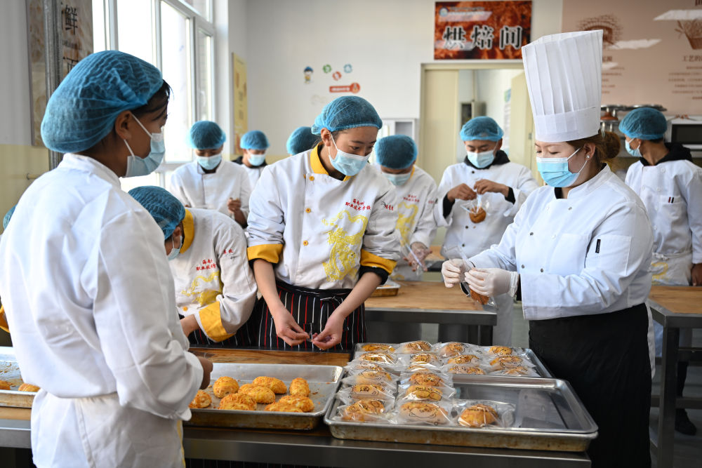 2024年12月17日,青海省海南藏族自治州職業(yè)技術學校烹飪專業(yè)教師黃雪妍(前右)在指導學生學習西點烘焙。近年來,青海省海南藏族自治州加大職業(yè)技術人才培養(yǎng)力度,開設藏醫(yī)藥、汽車維修、烹飪等專業(yè),通過推進學校與企業(yè)聯(lián)合辦學,創(chuàng)新校企合作、定向培養(yǎng)等辦學模式,拓寬職業(yè)教育畢業(yè)生就業(yè)渠道。