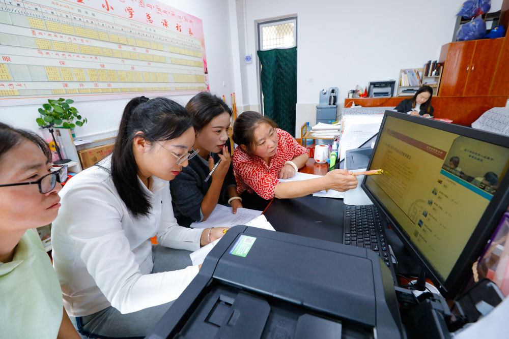 2024年9月27日,四川省甘孜藏族自治州道孚縣城關第一完全小學六年級的語文老師利用成都市實驗小學全日制遠程植入式教學系統(tǒng)進行集體備課。道孚縣城關第一完全小學始建于1910年,大批學生來自邊遠地區(qū)農(nóng)牧民家庭。學校通過互聯(lián)網(wǎng)遠程教育系統(tǒng),引入成都市實驗小學的辦學理念、課堂教學、教研活動、管理舉措,讓川西高原的孩子們在家門口也能接受現(xiàn)代優(yōu)質(zhì)教育。