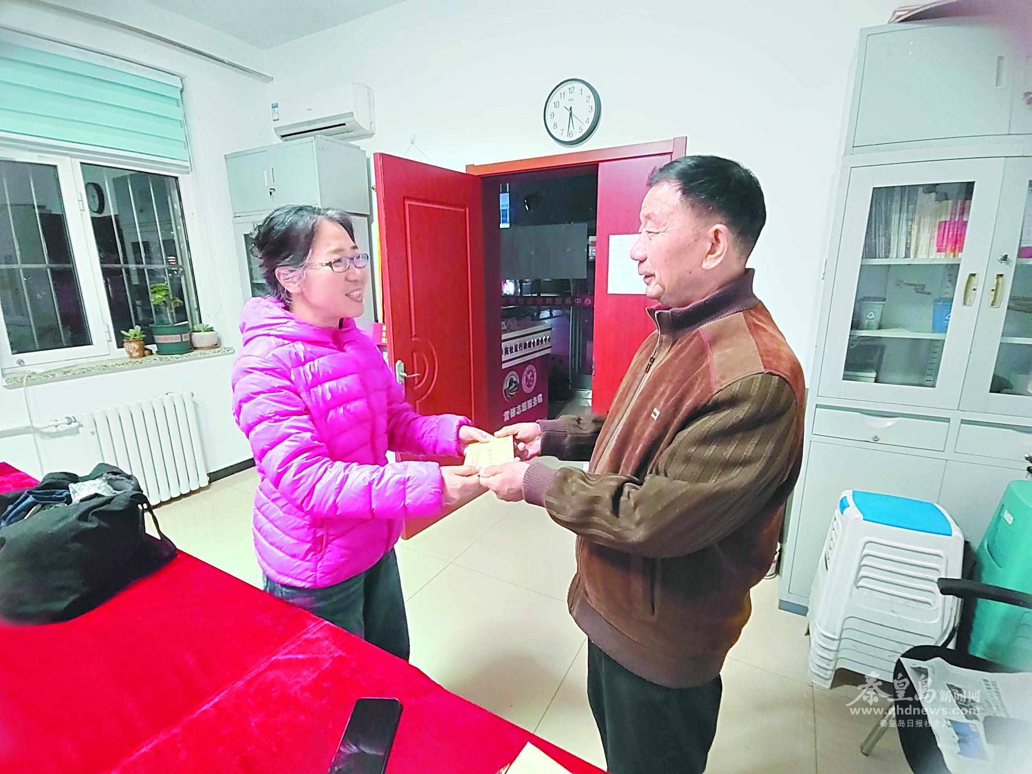 王晶(左)走訪慰問社區(qū)老干部。(圖片由秦皇島經(jīng)濟(jì)技術(shù)開發(fā)區(qū)黨群工作部提供)
