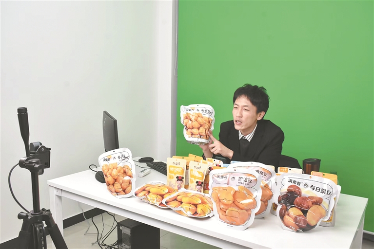 “家人們,這是剛達(dá)回糖期的青龍板栗,現(xiàn)炒現(xiàn)賣、香甜軟糯,下單24小時(shí)直達(dá)家門口……”同一天,青龍電商直播基地內(nèi),農(nóng)村電商帶頭人于寶龍的直播間里熱鬧非凡,實(shí)時(shí)訂單不斷刷新。
