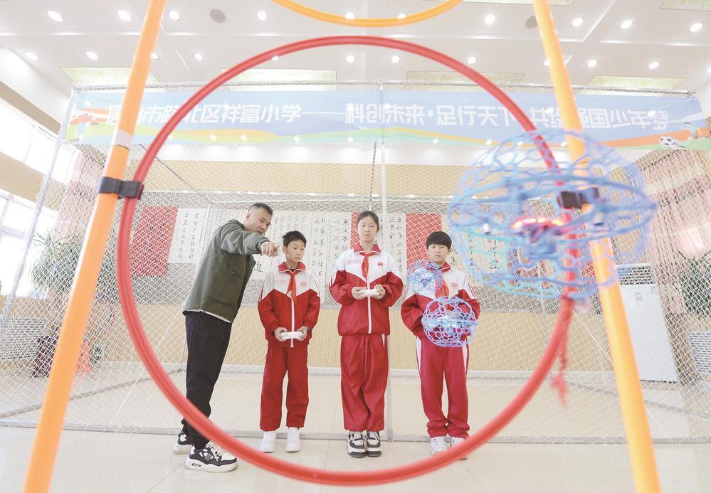 圖為路北區(qū)祥富小學(xué)學(xué)生在教練的指導(dǎo)下進行無人機操控訓(xùn)練,把科技教育融入學(xué)生的興趣愛好之中(資料片)。記者 呂光宇 攝