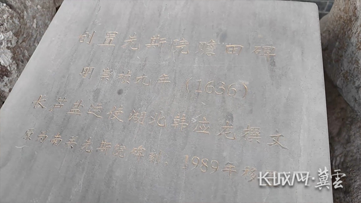 《創(chuàng)置先斯院贍田碑記》是明代碑刻。長城網(wǎng)·冀云客戶端記者 崔上 攝