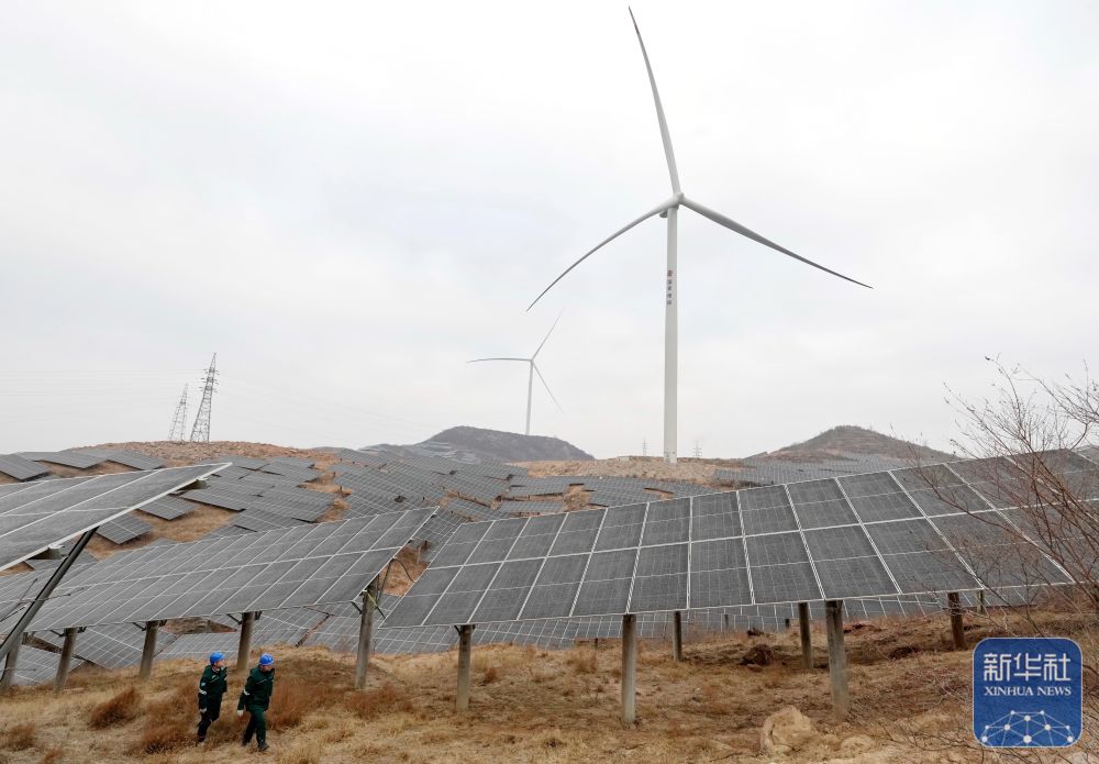 ↑ 1月17日,國網(wǎng)贊皇縣供電公司的工人在轄區(qū)院頭鎮(zhèn)曹家莊村附近的“風(fēng)光互補(bǔ)”發(fā)電場巡檢并網(wǎng)線路。